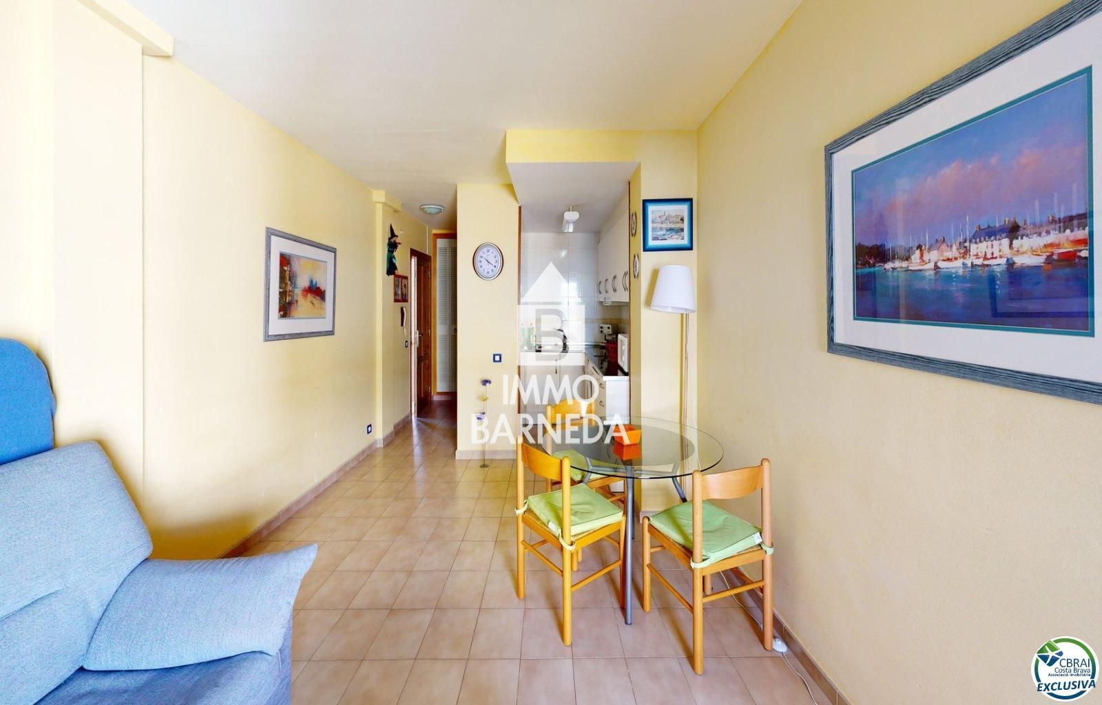 Ubicado en una excelente zona, este acogedor estudio de 26 m² es la oportunidad ideal para disfrutar de la vida junto al mar. A tan solo unos pasos del Paseo Marítimo de Roses, con fácil acceso a la playa, este espacio te ofrece todo lo necesario para una vida cómoda y práctica. El estudio cuenta con una cocina americana totalmente equipada, integrada en un amplio y luminoso salón que ofrece un ambiente abierto y moderno. Perfecto para relajarse o disfrutar de reuniones con amigos. Situado en una zona tranquila, a pocos minutos a pie del centro del pueblo, donde podrás encontrar una amplia variedad de restaurantes, tiendas y servicios. Es ideal tanto para quienes buscan una segunda residencia como para aquellos que deseen establecer su hogar en una de las localidades más encantadoras de la Costa Brava. ¡No dejes pasar esta oportunidad de vivir cerca del mar en un entorno inmejorable
