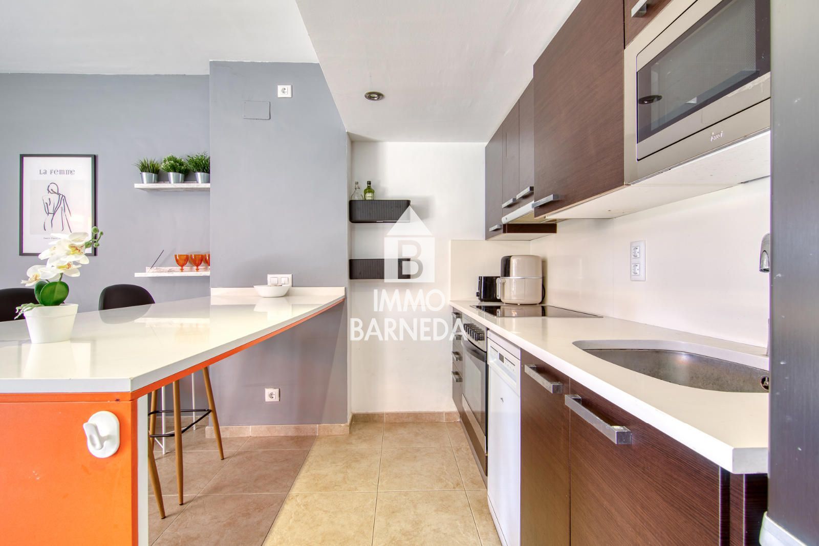 For added comfort, the apartment includes a private parking space with storage room, double-glazed windows and reversible air conditioning throughout.