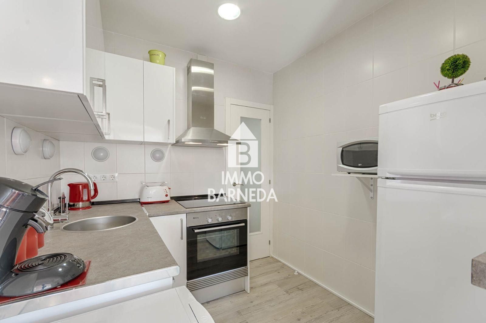 La distribución se compone de dos habitaciones acogedoras, un baño completo y una cocina abierta al salón comedor que da acceso a un balcón privado. Desde aquí podrás disfrutar del aire mediterráneo después de un día de playa o de compras.