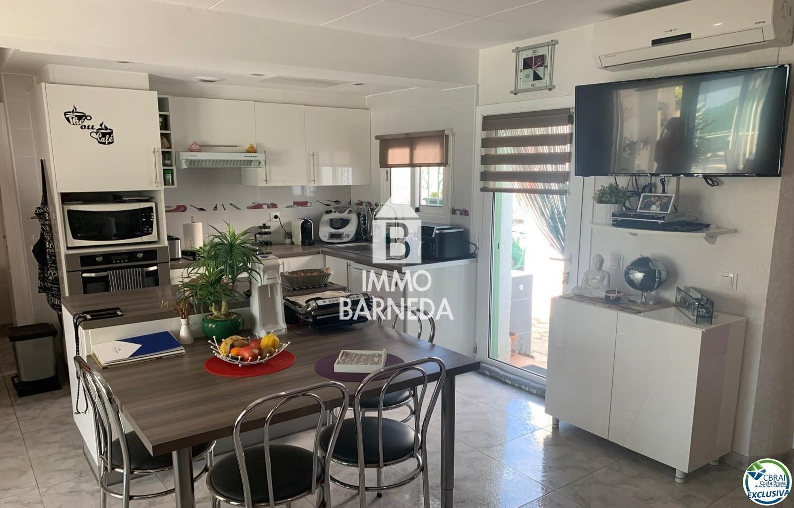 Cette jolie maison de 98 m2 , construite sur un terrain de 168m2 se situe dans un quartier très calme au coeur de Santa Margarita Rosas , á 1.700 mètres de la plage principale et á proximité immédiate des supermarchés et restaurants, été comme hiver .